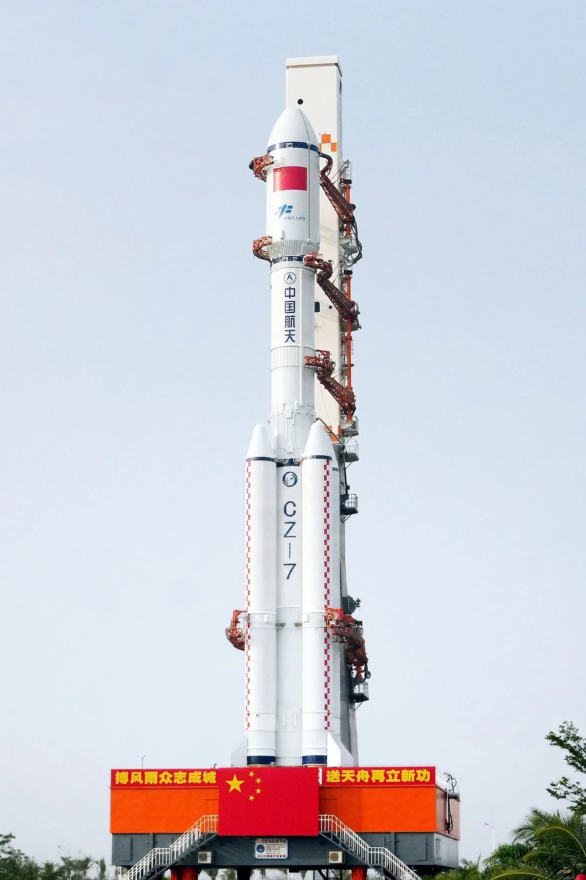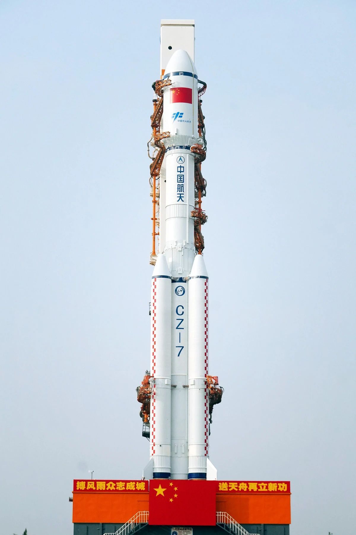 天舟八号货运飞船与长征七号遥九运载火箭组合体垂直转运至发射区
